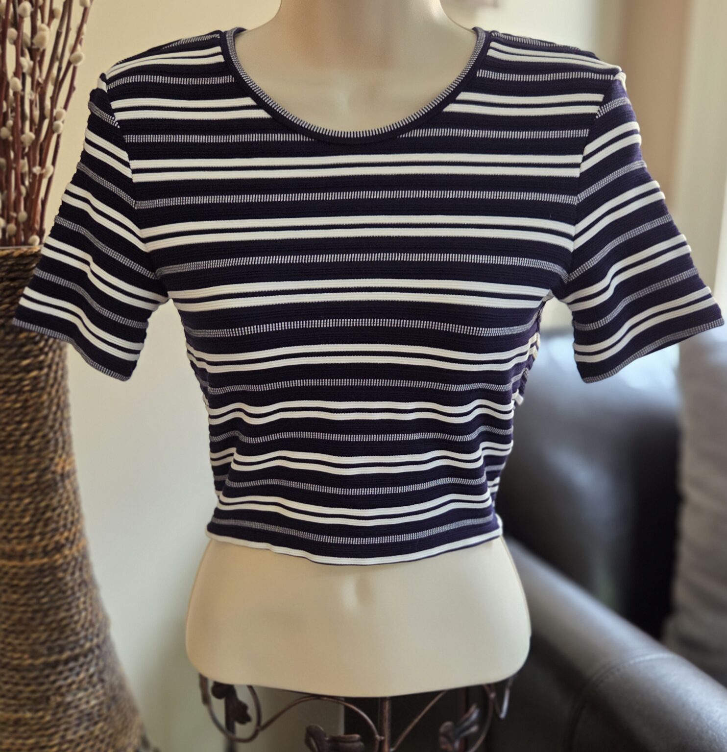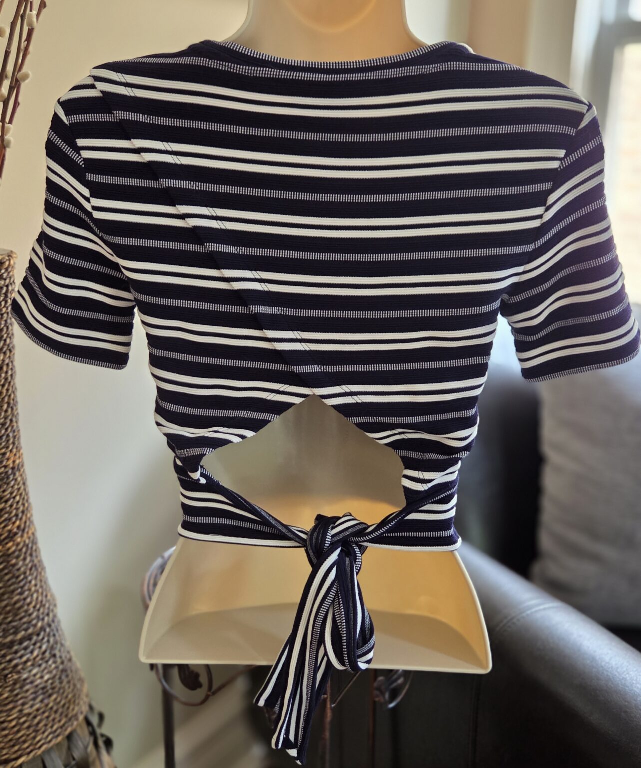 Black/White Tie Back Short Sleeve Top