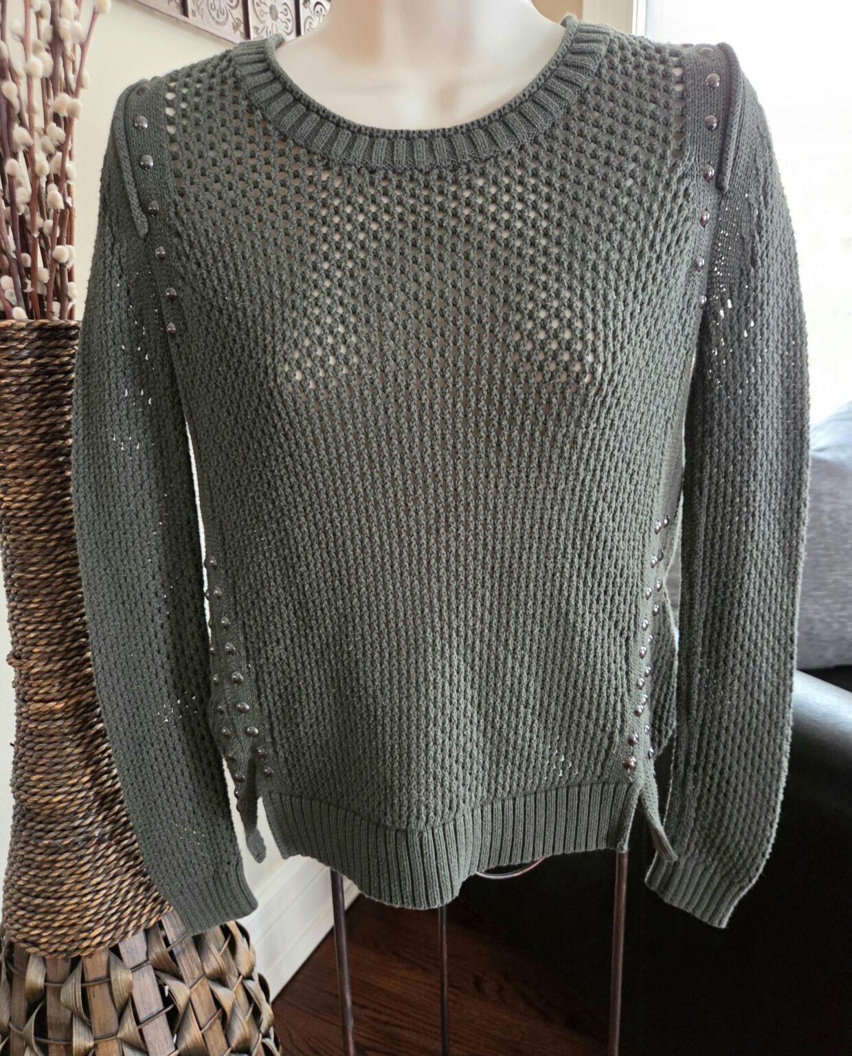 Olive Sweater With Metal Accents quantity